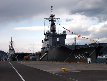 今回の見学対象は練習艦「しらゆき」でした。23日は天皇誕生日ということで、みんな満艦飾してて!はああ……初めて見た満艦飾……。同じバースには訓練支援艦の「くろべ」や掃海母艦の「ぶんご」もいて、遠くには「おおすみ」や「いせ」も見れて!ひゅうがは二回神戸に来てくれたけど、いせは初めて見た~。前に呉に来た時は、ちょうどいせがよそで一般公開してたし、11月の神戸の防災訓練は「いせが来るの厭って言ったからひゅうがが来ることになった」って話でw あと、おおすみさんは強襲揚陸艦だよね、って話してた。護衛艦です。毎回思うんだけど、「強襲揚陸艦」って字面がすごい。
