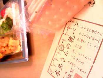 結局3時くらいまでお話していたので、眠たい目をこすりながら起床。昨夜の残りのおかずと、海軍仕様の乾パン(よくある小さいやつではなくってカード大のビスケット状)を朝食に。で、準備をして、出発!