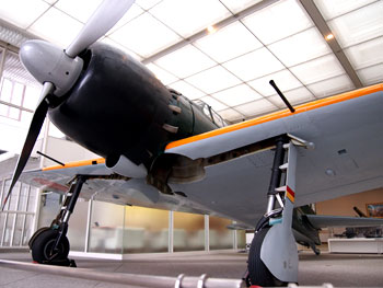 それから、今回のメインディッシュ・大展示室。Kさんの本命・翔鶴(空母)の1/50模型があるのです!(わたしも空母の中では翔鶴が一番好き)大きい!わたし、前に一度遊就館に行ってて、翔鶴を見ているので、それで今回のツアーにここを組み込んだのです。ちょっと前のコーナーでしんみりしていたのに、一気にテンション上昇です。大きい分だけ、すごく細かいところまで再現されててさ!空母の、排煙に海水を吹き付けて、煙が甲板上の気流に悪影響して艦載機の動きを妨げないようにする、っていう機構がいいね、って2人で話してました。因みにお台場の船の科学館に1/100瑞鶴もいたらしいんだけど、本館展示停止中なの……。