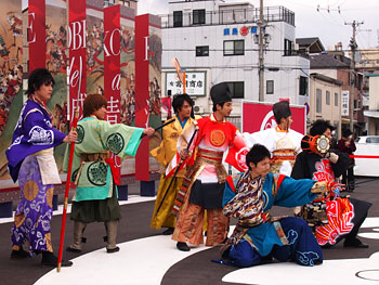 あと、今回のメインは「神戸・清盛隊」の演舞を見ること!歴史だと知盛が好きなんだけど(あと知章(知盛の息子)と敦盛)、清盛隊のイケメン担当・宗盛にやられたw 骨折して片腕吊って演舞のできないイケメン……でもおいしいぜ。ところどころで、メンバーがギャラリーに近付いてくれるんだけど、ベンチの一番端っこに座ってたらこっち来てくれて!キャー!罰ゲームで最後に小ネタをやらされてるイケメン担当もかわいかったです。