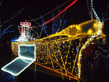 海軍関係では、大和と赤城と紫電改のイルミがあります!かわいい……。赤城の前で集合写真を撮っておきながら「これ大和?」って言ってるグループに、Hさんと二人で「……」ってなってました。ま、まあ、そうだよね(目逸らし)。