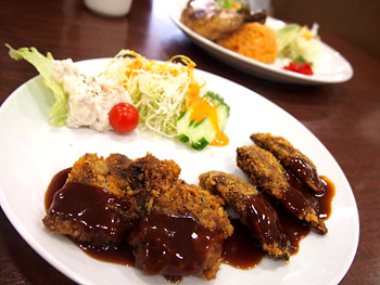 見学が終わった後は、ようやくお昼ごはん!戦艦霧島の鯨カツレツをいただきました再び!Hさんはチキンライスを頼んでらっしゃいました。レーズン入ってないことを確認したよ。