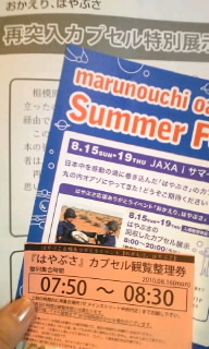 はやぶさの再突入カプセルが丸の内オアゾで昨日から公開されているのです。7月末の相模原キャンパスとか今月初めの筑波のは明らか行けなかったし、わたしが東京に来るこのタイミングで便利な場所で公開してくれてよかったー!ありがとうJAXA!